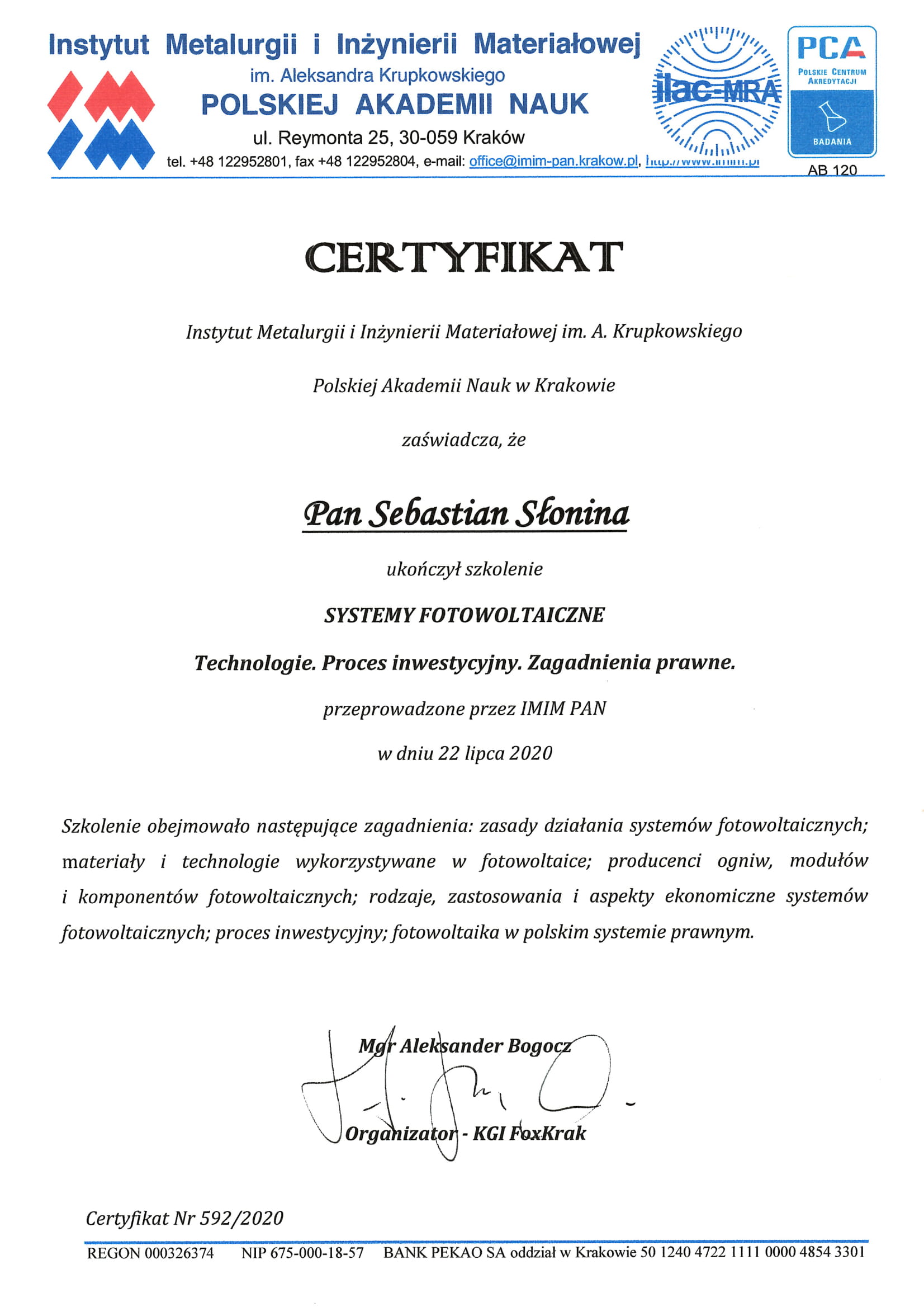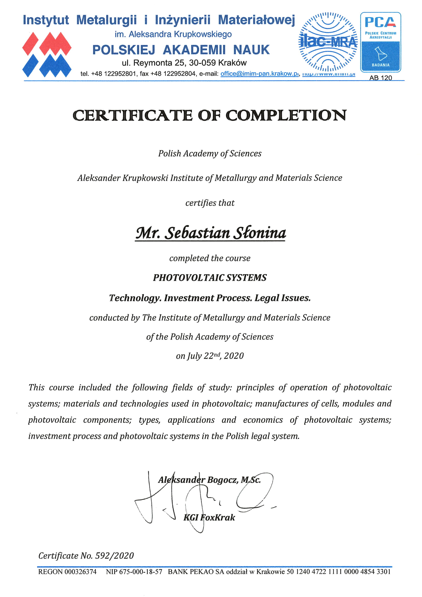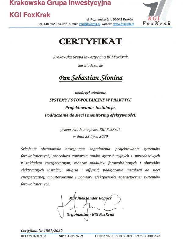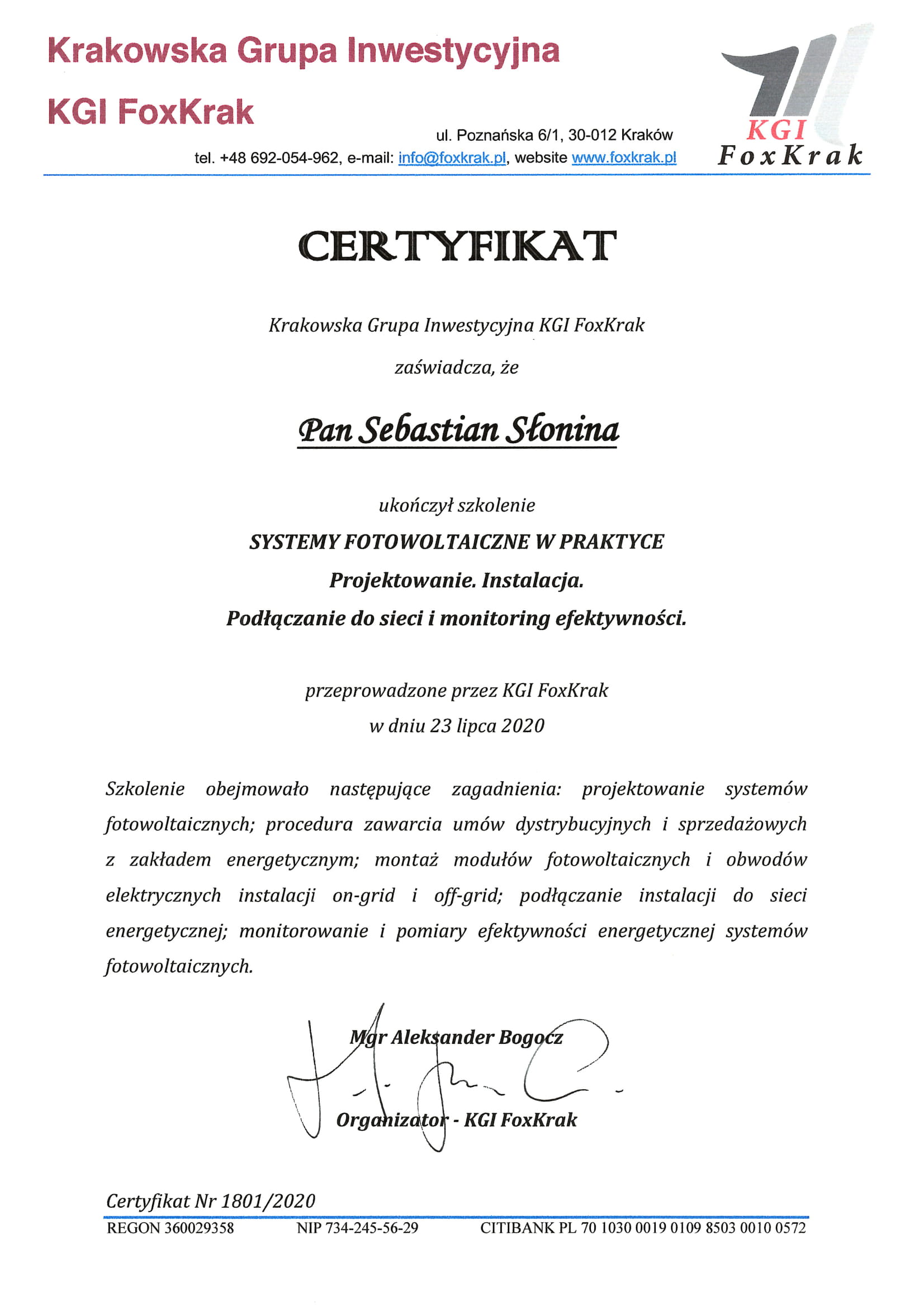 Ukończyliśmy również szkolenia dla Instalatorów systemów fotowoltaicznych.