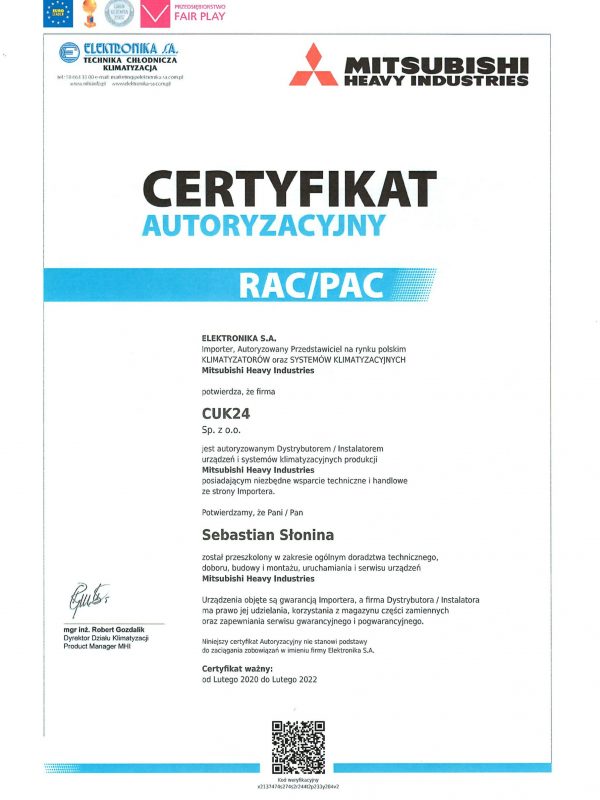 Dzięki szkoleniom autoryzującym marek, które montujemy, możemy wraz z producentem zaoferować wydłużoną gwarancję urządzeń klimatyzacyjnych na części zamienne nawet do 7 lat.